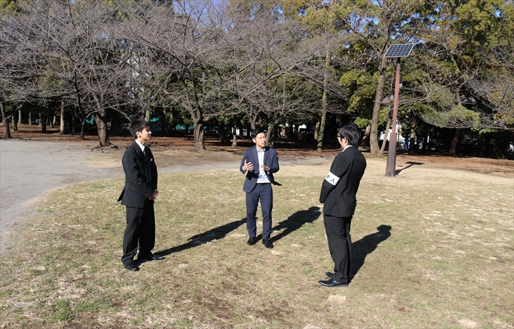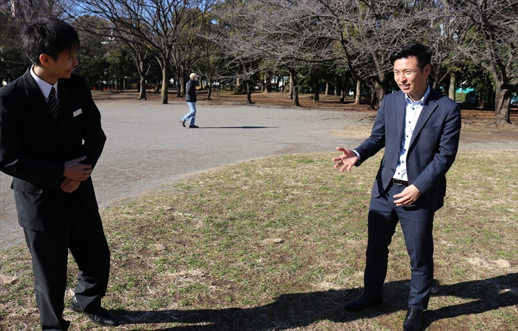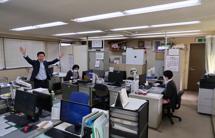 ▲公園のすぐ前に会社があるため、会社に戻ってお二人のお仕事の様子を見させていただきます。