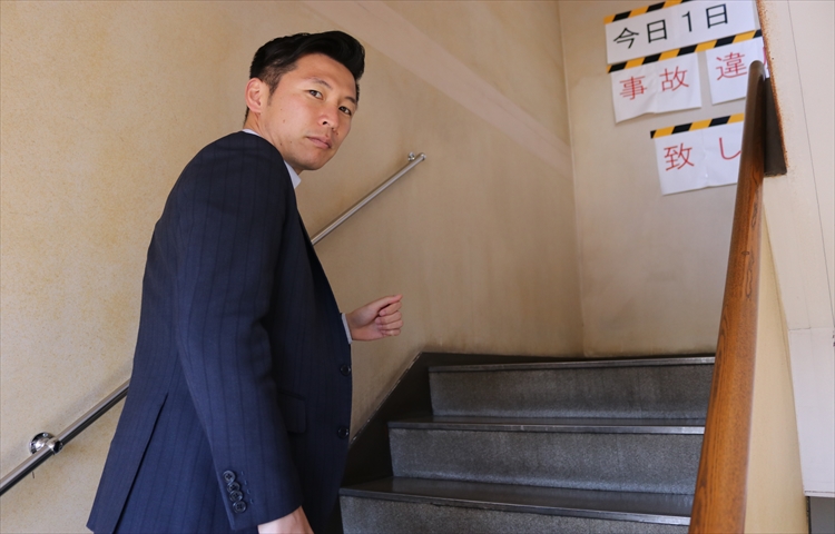 ▲階段をのぼり、待ち合わせの屋上を目指します。