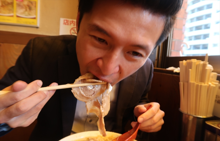う…ウマい!麺が背脂と絡み合ってガツンとくる旨さです。チャーシューも長時間煮込んであるので口に入れるとホロホロと溶けていき、見た目よりずっと食べやすいです!