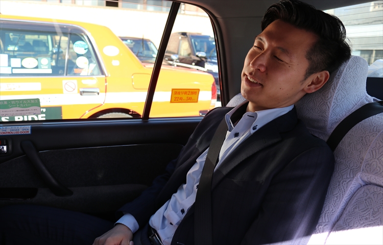 ▲あまりの居心地の良さに、だんだん眠くなってきちゃいました。ビジネスパーソンにとってタクシーは本当に癒しの移動空間です♪